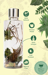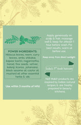 Kitchen fresh Hair Oil for severe hairfall and hair loss control. Specially made with warming ingredients for Winter & Cold conditions. This Dasabuti oil is enriched for over 10HRS via Slow Heat Infusion of fresh hibiscus leaves, neem, curry leaves, amla, shikakai, kapoor kachri, nagarmotha, harad, flax seeds, vetiver, kalonji & more in multiple oils such as castor, sesame & mustard. 15 Ayurvedic herbs infused for maximised results. All oils are PURE Cold Pressed. ZERO Paraffin & Mineral Oils. ZERO chemicals & preservatives.