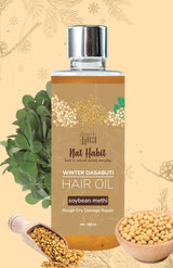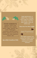 Kitchen fresh Hair Oil for ultimate repair of dry, rough or damaged hair. Specially made with warming ingredients for Winter & Cold conditions. This Dasabuti oil is enriched for over 10HRS via Slow Heat Infusion of fresh soybean, methi, amla, neem, shikakai, kapoor kachri, indigo, triphala, flax seeds, malkangani & more in multiple oils such as castor, sesame & mustard. 16 Ayurvedic herbs infused for maximised results. All oils are PURE Cold Pressed. ZERO Paraffin & Mineral Oils. Zero Chemicals & preservatives.
